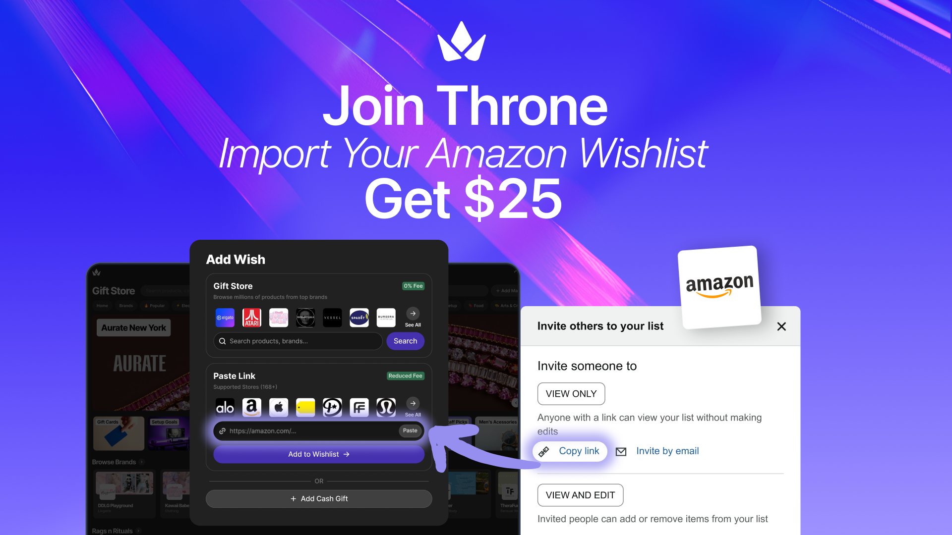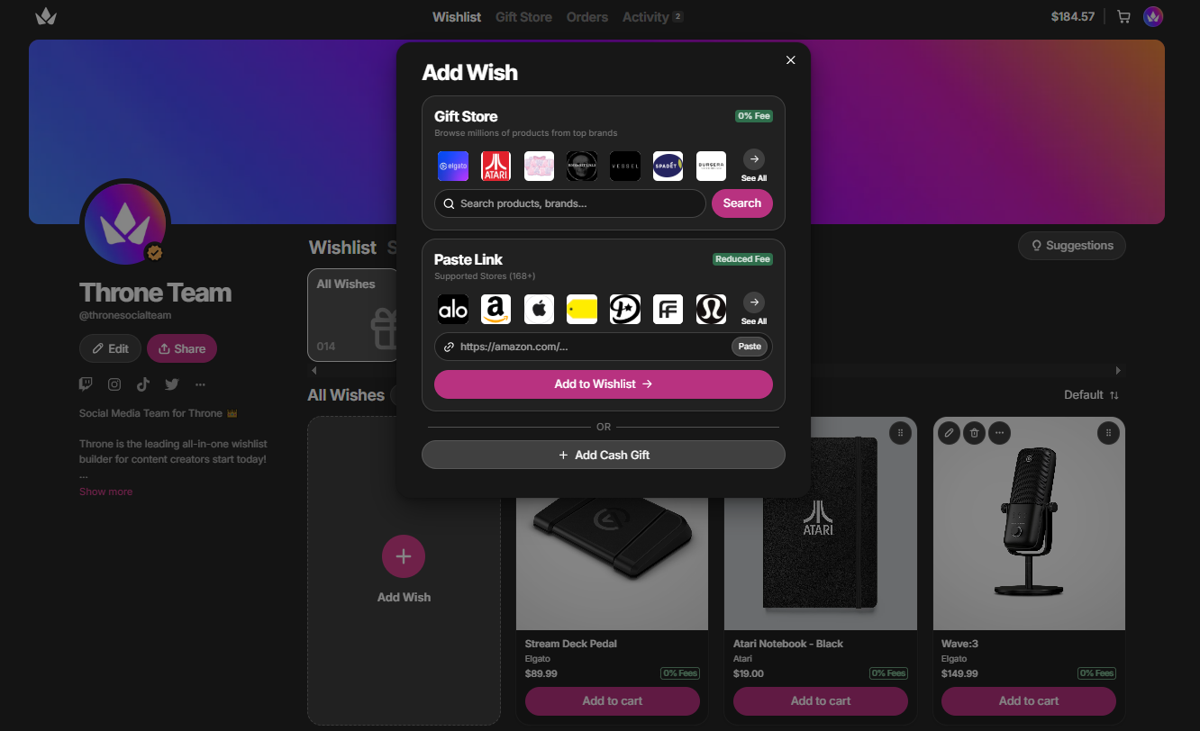 - Paste your Amazon wishlist link directly into Throne
